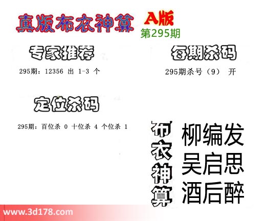 3d之家布衣图库之布衣神算图第2016295期详解: