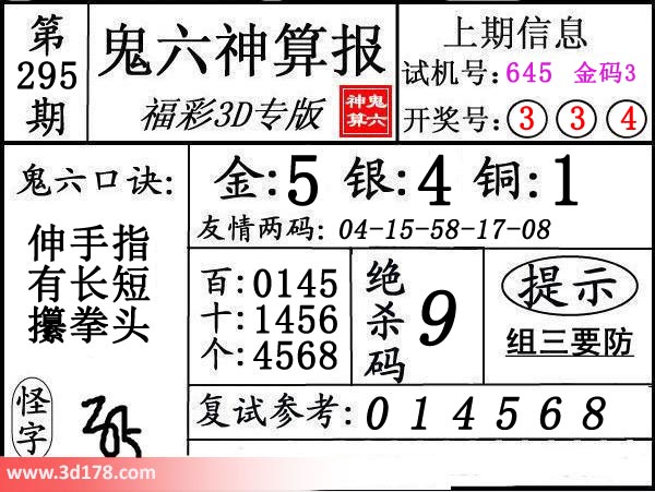 3d第16295期鬼六神算报为您推荐鬼六口诀: