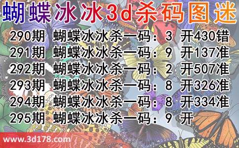 福彩3d第2016295期蝴蝶冰冰杀一码详情: