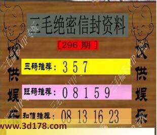 福彩3d第296期三毛绝密信封资料图详解: