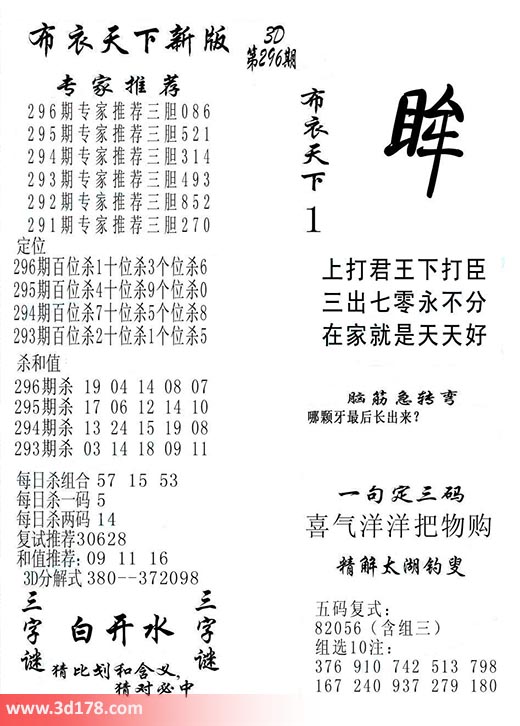 本期3d之家布衣图库3d布衣天下新版详解:定位杀号推荐: