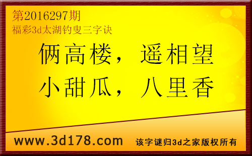 福彩3d第2016297期太湖图库解字谜详解: