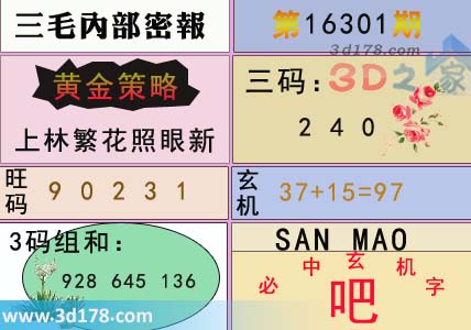 3d之家三毛图库第16301期三毛内部密报图详解: