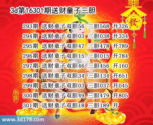 下面我们一起来回顾一下3d之家胆码图送财童子三胆近期推荐详情: