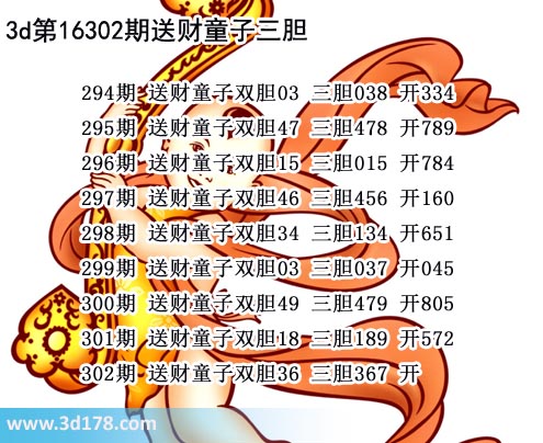 胆码图库3d第2016302期送财童子图: