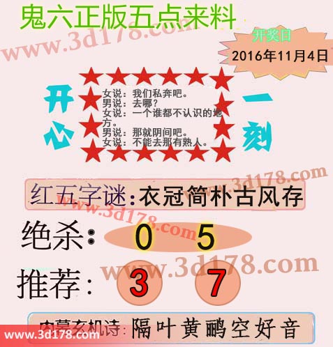 3d鬼六图库第16302期鬼六正版五点来料图: