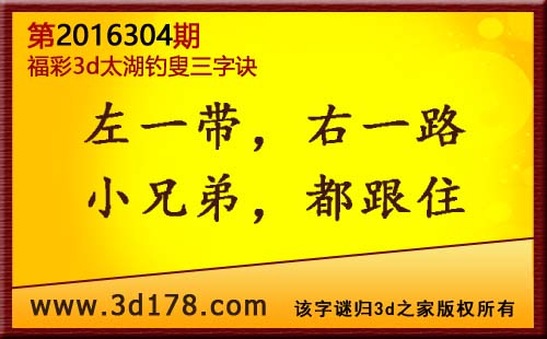 福彩3d第2016304期太湖图库解字谜详解: