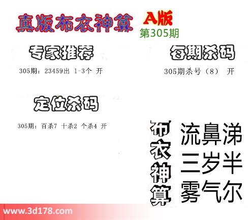 3d之家布衣图库之布衣神算图第2016305期详解:专家推荐: