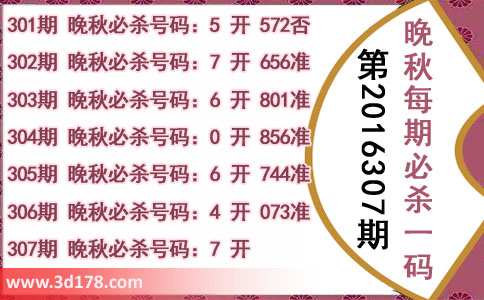 3d第2016307期晚秋杀码图: