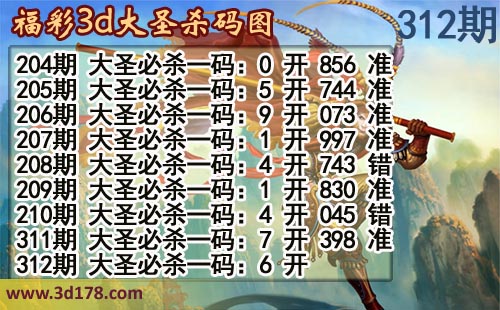 第2016312期3d大圣杀码图详情如下: