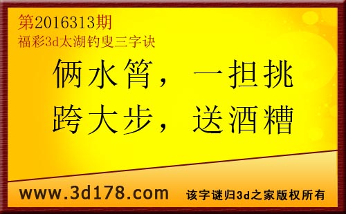 福彩3d第2016313期太湖图库解字谜详解: