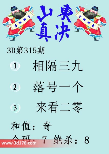 福彩3d第16315期山东真诀图如下所示: