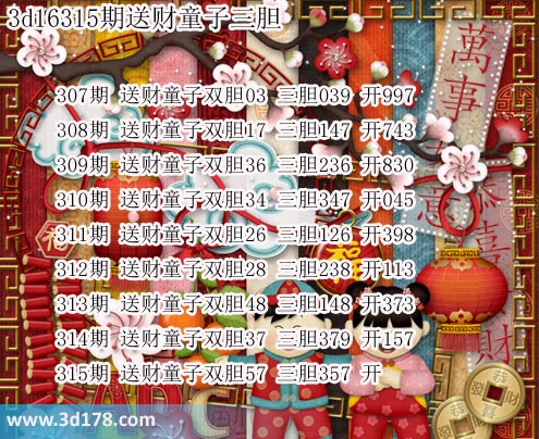 下面我们一起来回顾一下3d之家胆码图送财童子三胆近期推荐详情: