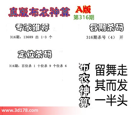 3d布衣神算第316期定位杀码: