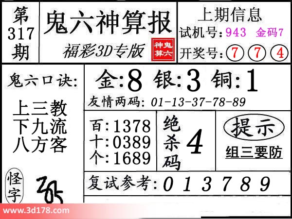 3d第16317期鬼六神算报为您推荐鬼六口诀: