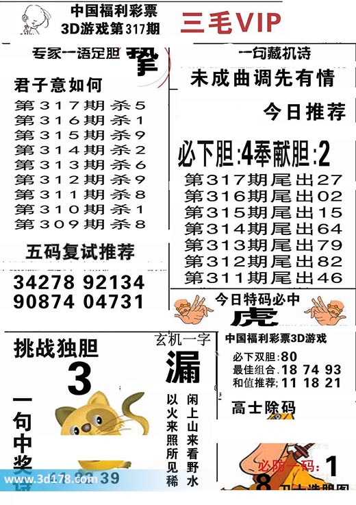 福彩3d第2016317期三毛VIP: