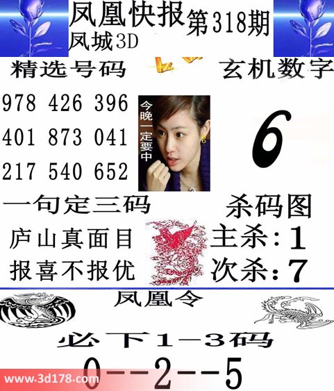 福彩3d凤凰快报图第16318期精选号码推荐: