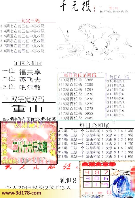 福彩3d第2016318期布衣千元报图详情分析如下: