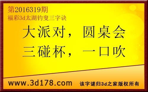 福彩3d第2016319期太湖图库解字谜详解: