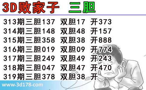 3d第2016319期败家子胆码图: