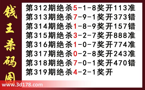 近期3d钱王杀码具体详情: