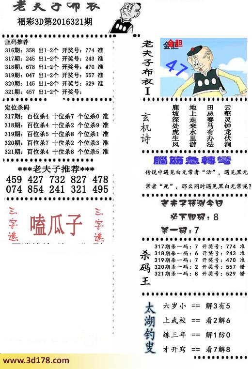 福彩3d第2016321期老夫子布衣图详情: