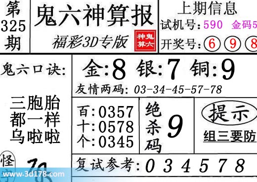 3d第16325期鬼六神算报为您推荐鬼六口诀:
