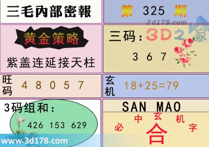 3d之家三毛图库第16325期三毛内部密报图详解: