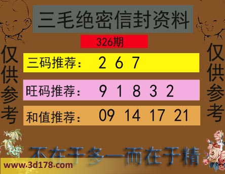 福彩3d第326期三毛绝密信封资料图详解: