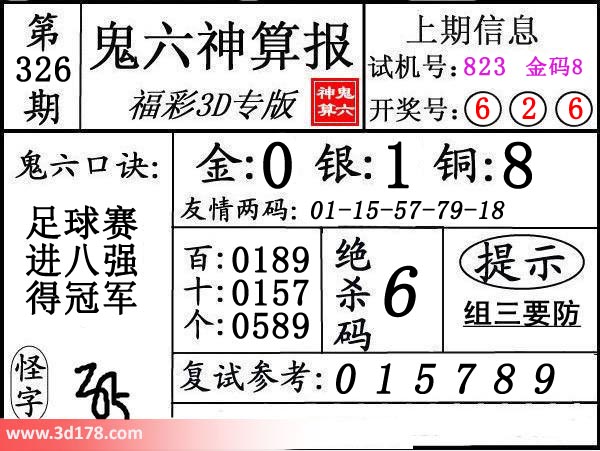 3d第16326期鬼六神算报为您推荐鬼六口诀: