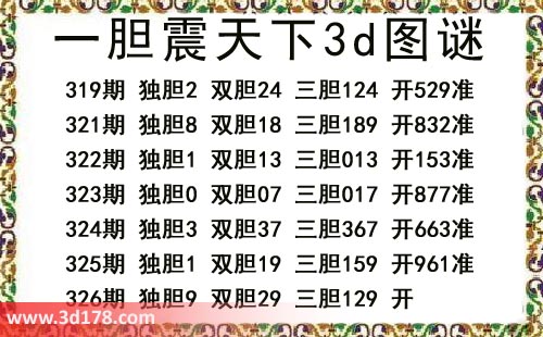 一胆震天下三胆图库由3d之家3d图库频道原创,仅供彩民参考,温馨提供。