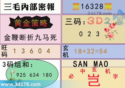 3d之家三毛图库第16328期三毛内部密报图详解: