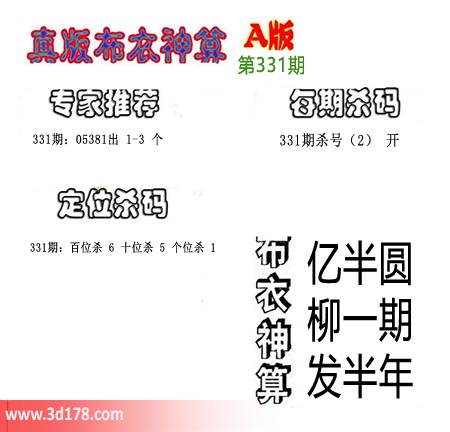 3d之家布衣图库之布衣神算图第2016331期详解:
