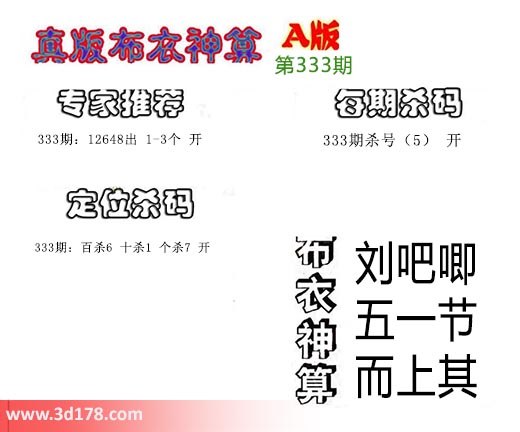 3d之家布衣图库之布衣神算图第2016333期详解: