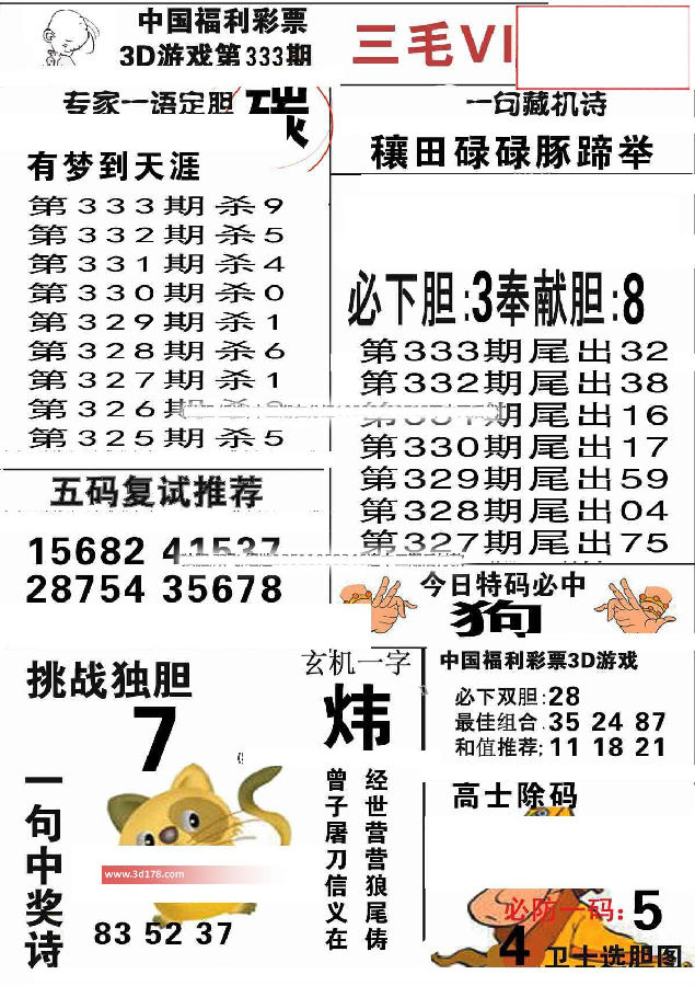 3d第2016333期三毛VIP详解: