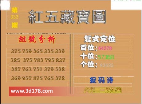 3d第2016333期红五藏宝图: