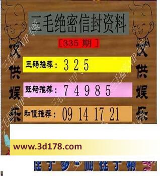 3d之家第2016335期三毛绝密信封资料图:福彩3d第335期三毛绝密信封资料图详解:三码推荐:235旺码推荐:45789和值推荐:9 14 17 21三毛图库由3d之家3d图库频道原创,仅供彩民参考,温馨提供。