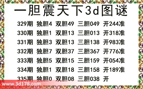 本期一胆震天下3d图谜