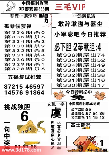 3d第2016336期三毛VIP详解: