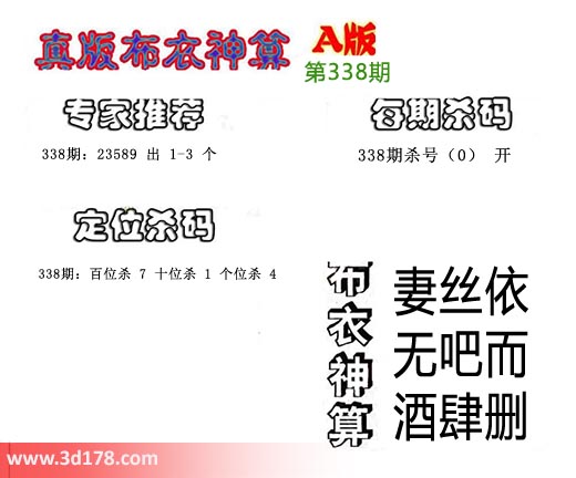 3d之家布衣图库之布衣神算图第2016338期详解: