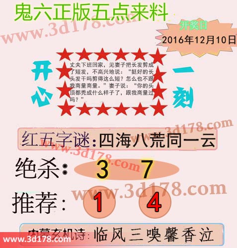 3d鬼六五点来料详解第2016338期:字谜:四海八荒同一云