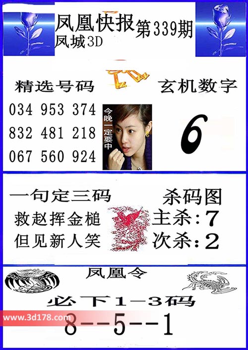 福彩3d凤凰快报图第16339期精选号码推荐: