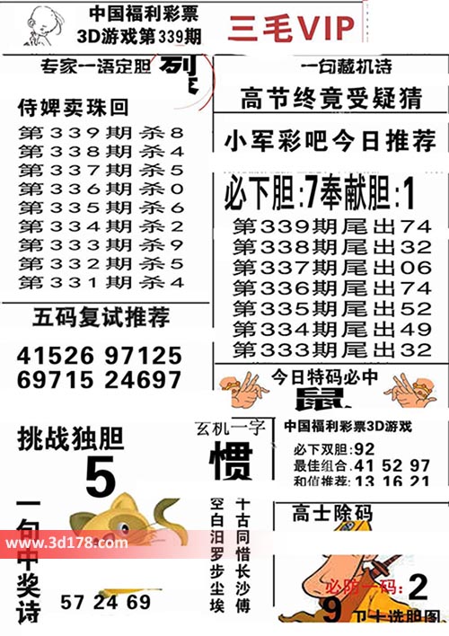 3d第2016339期三毛VIP详解: