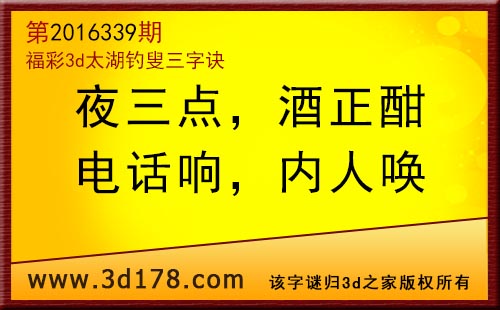福彩3d第2016339期太湖图库解字谜详解: