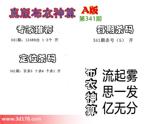 3d之家布衣图库之布衣神算图第2016341期详解:
