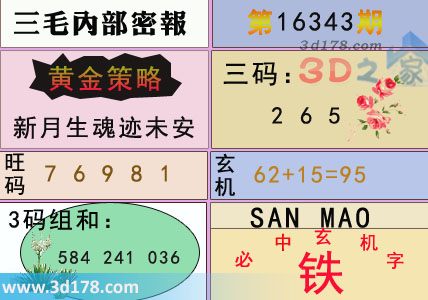 3d之家三毛图库第16343期三毛内部密报图详解: