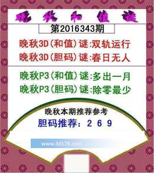 晚秋P3(和值)谜:多出一月