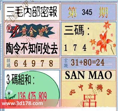3d之家三毛图库第16345期三毛内部密报图详解: