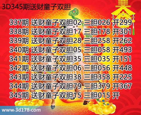 345期 送财童子双胆15 三胆015 开