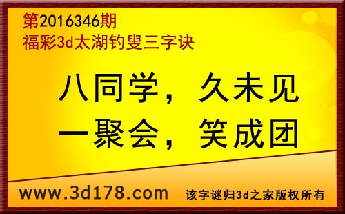 福彩第2016346期3d太湖字谜:八同学,久未见,一聚会,笑成团